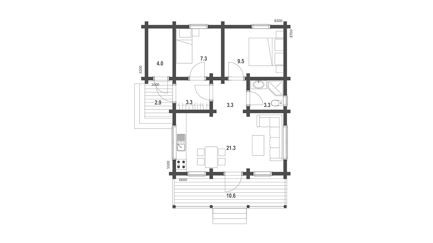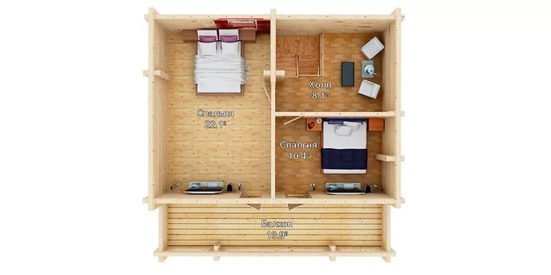 Проект одноэтажного дома из бревна OB81
