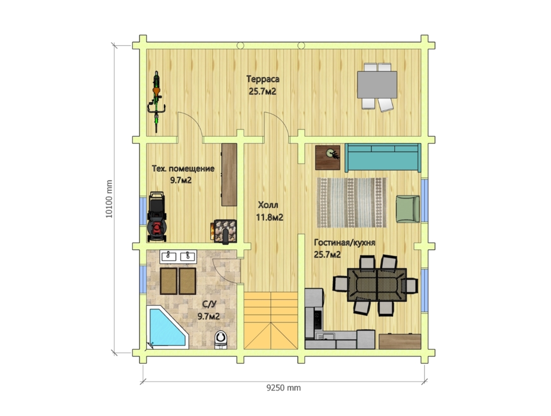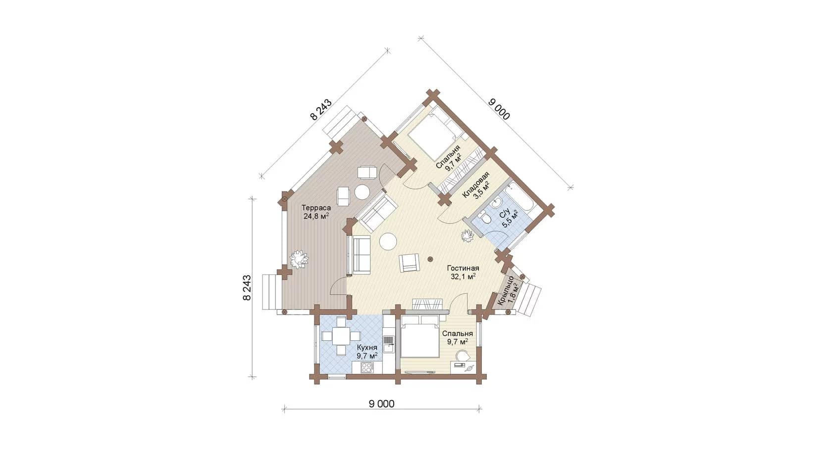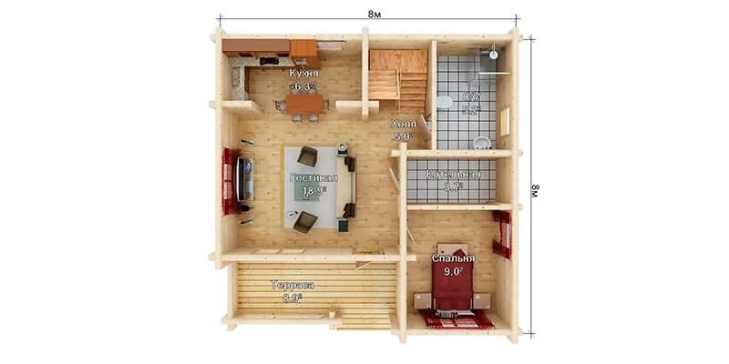 - Размеры: 9 x 8 м.