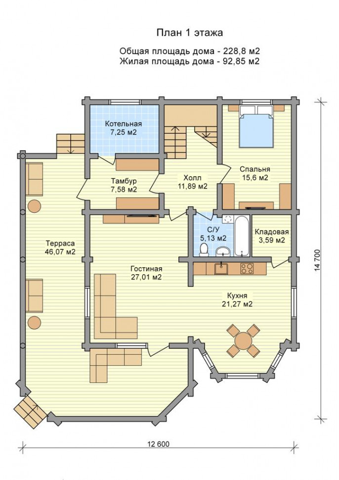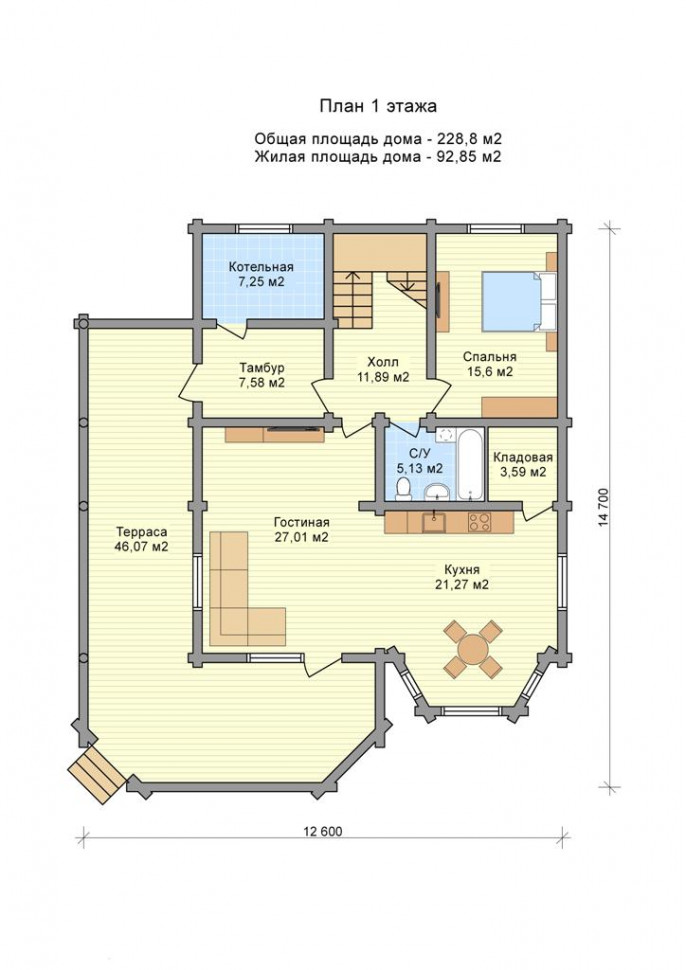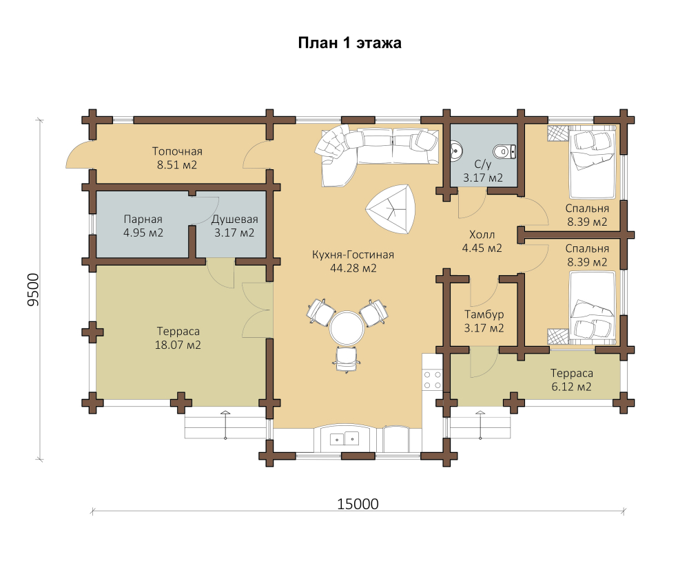 Проект одноэтажного дома из бревна OB112