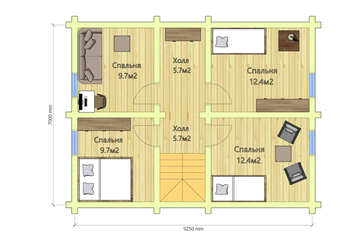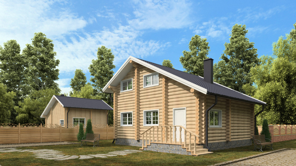 Проект двухэтажного дома из бревна OB93