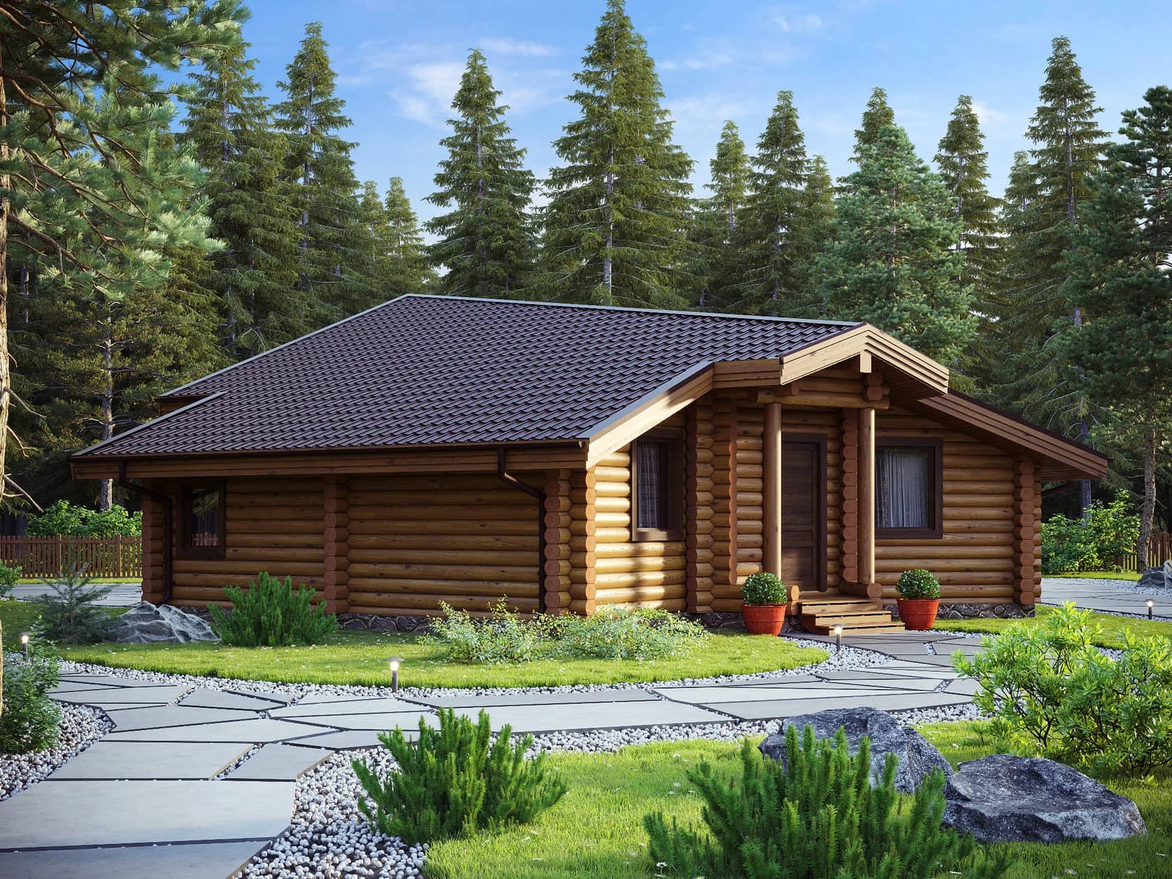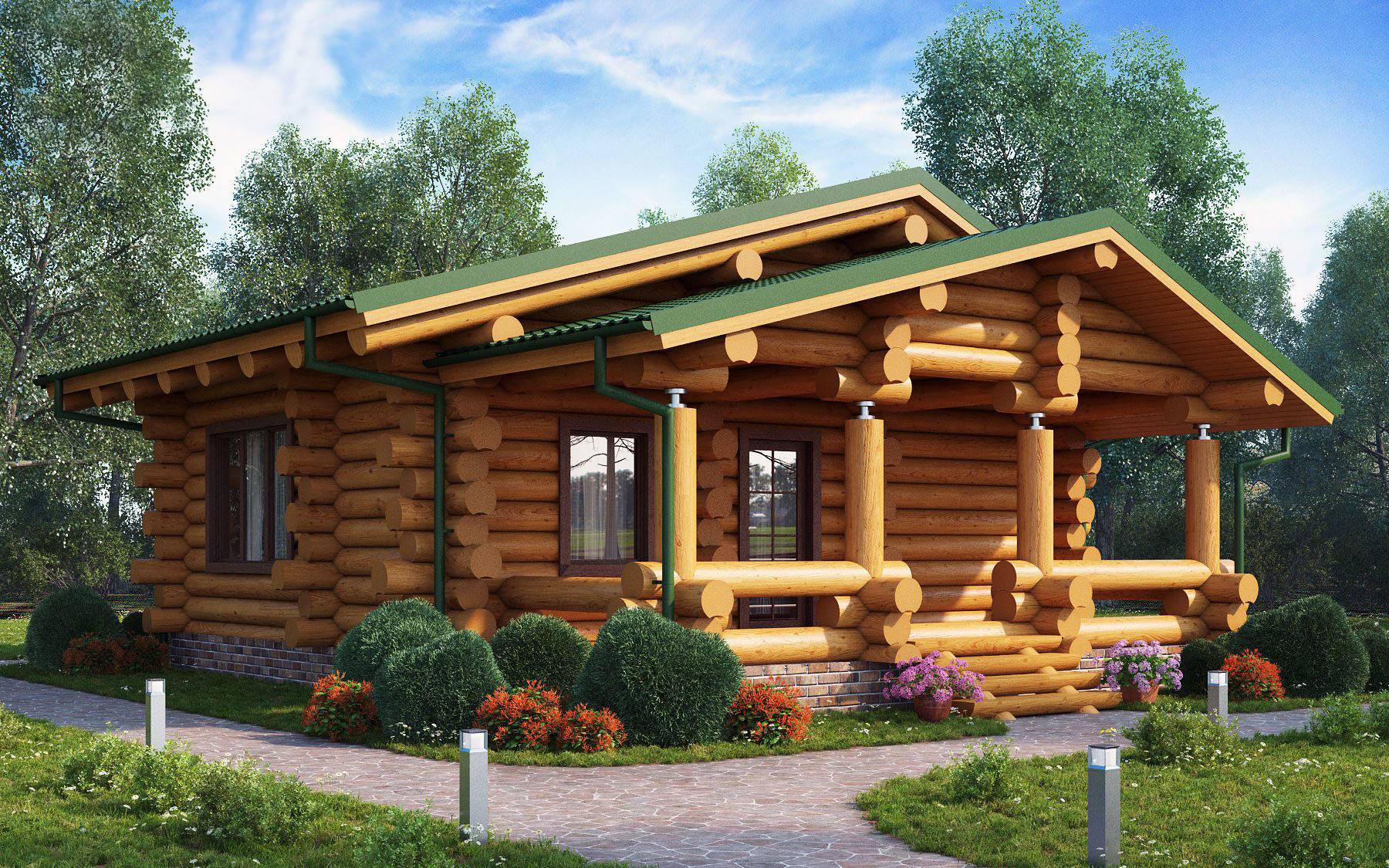 Одноэтажные дома из оцилиндрованного бревна
