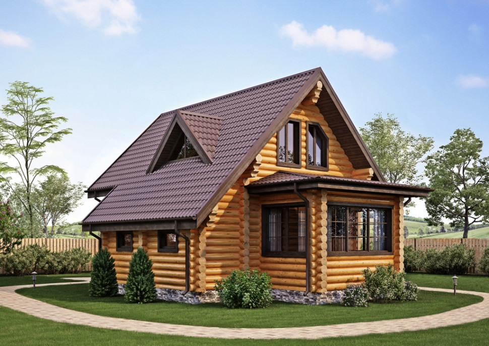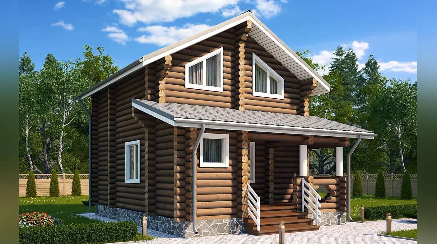 Проект дома с мансардой из бревна OB127