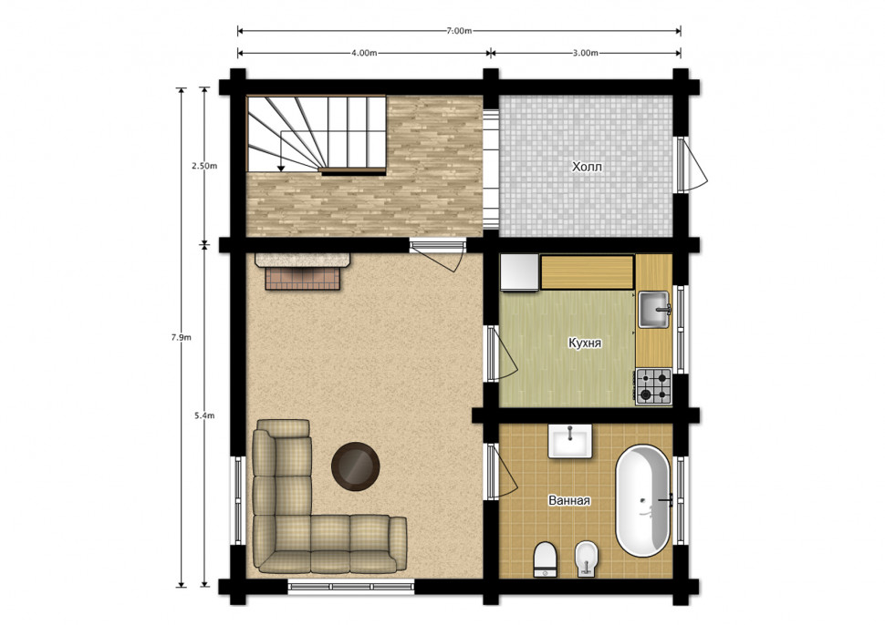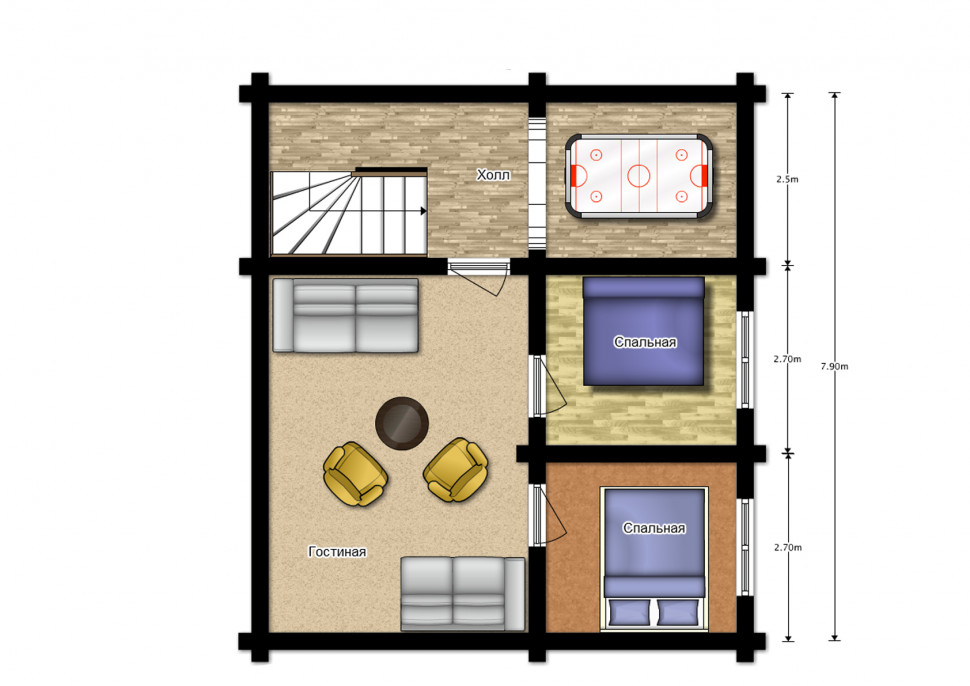 - Размеры: 7.9 x 7 м.