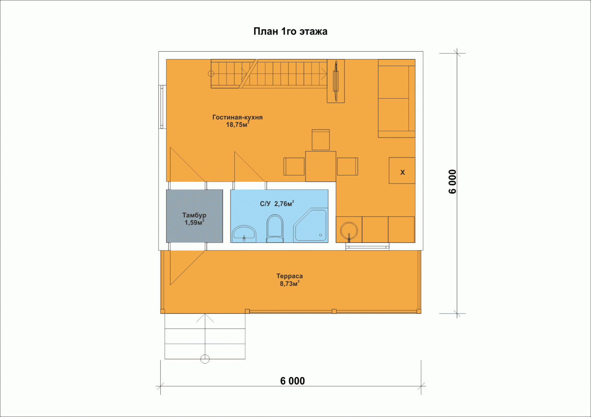 Размер дома: 6х6 м