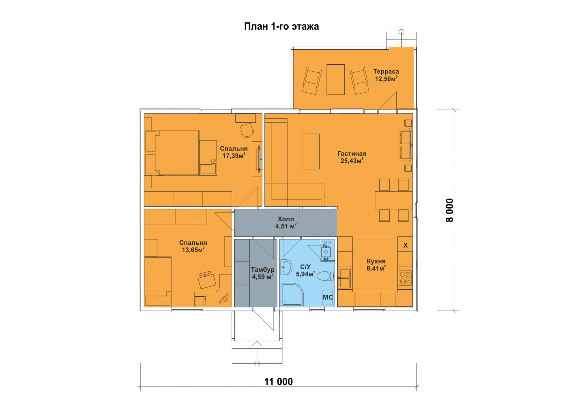 Размер дома: 11х8 м