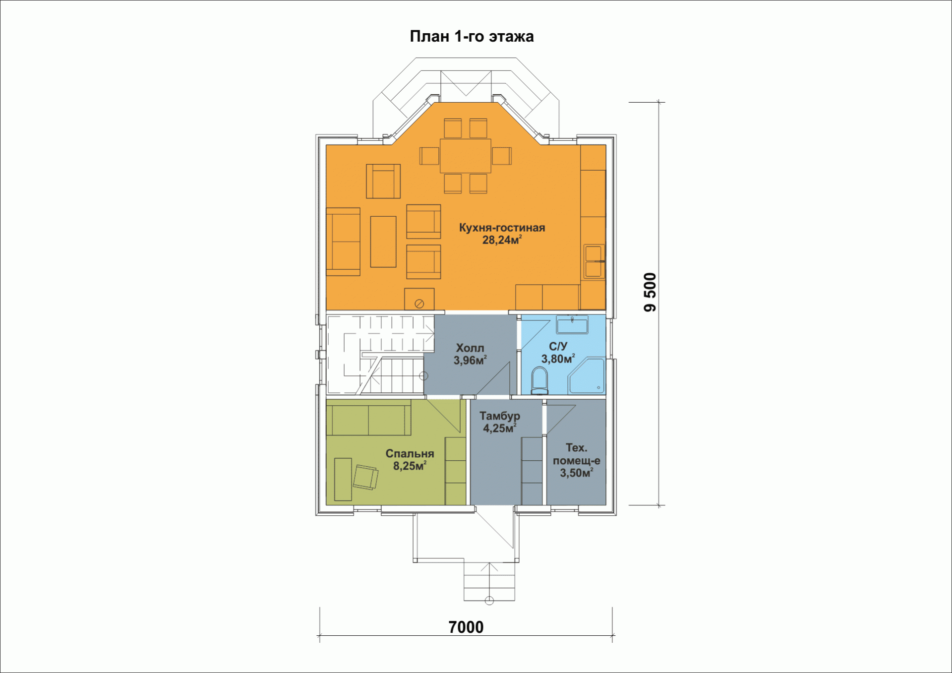 Размер дома: 9,5х6,5 м
