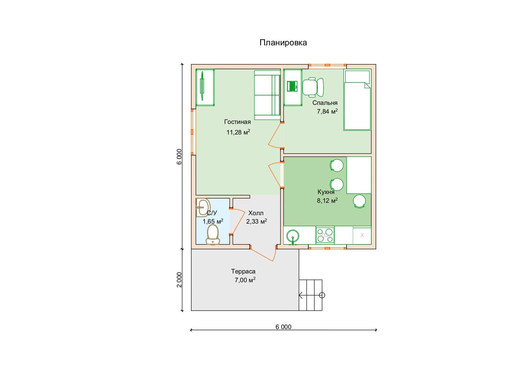 Площадь дома: 36м²