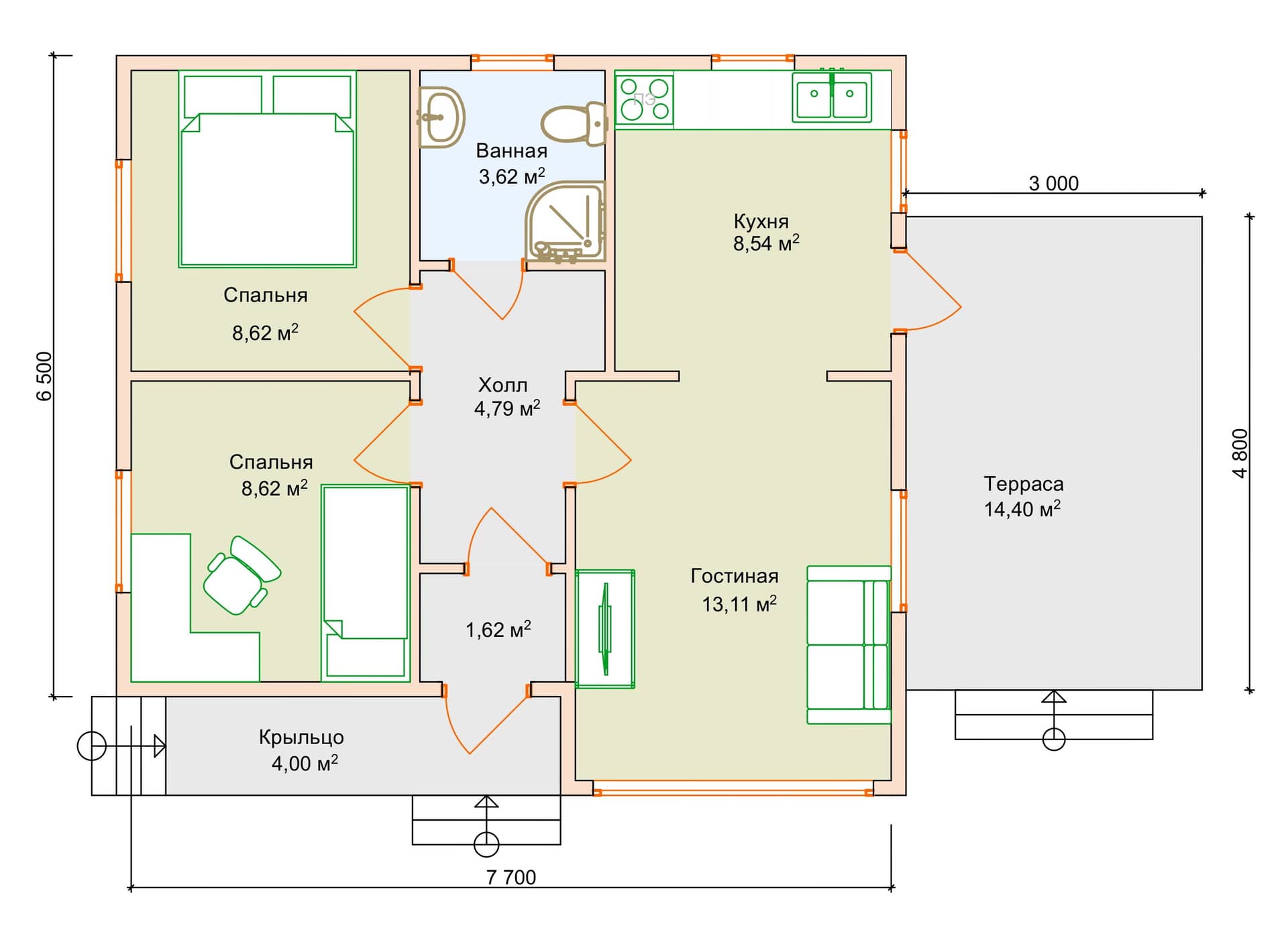 Площадь дома: 54м²