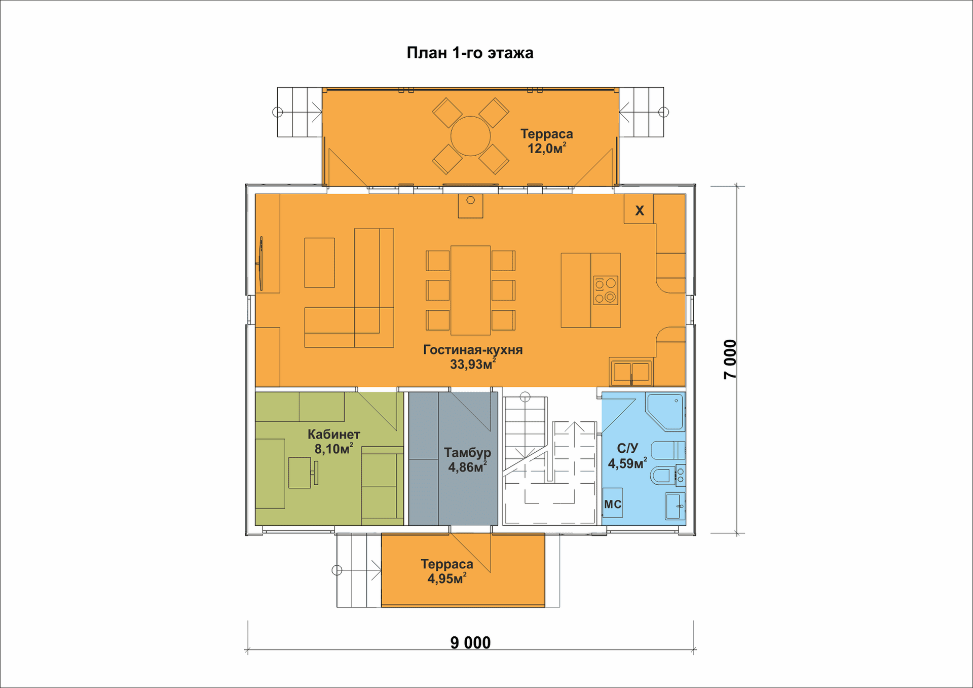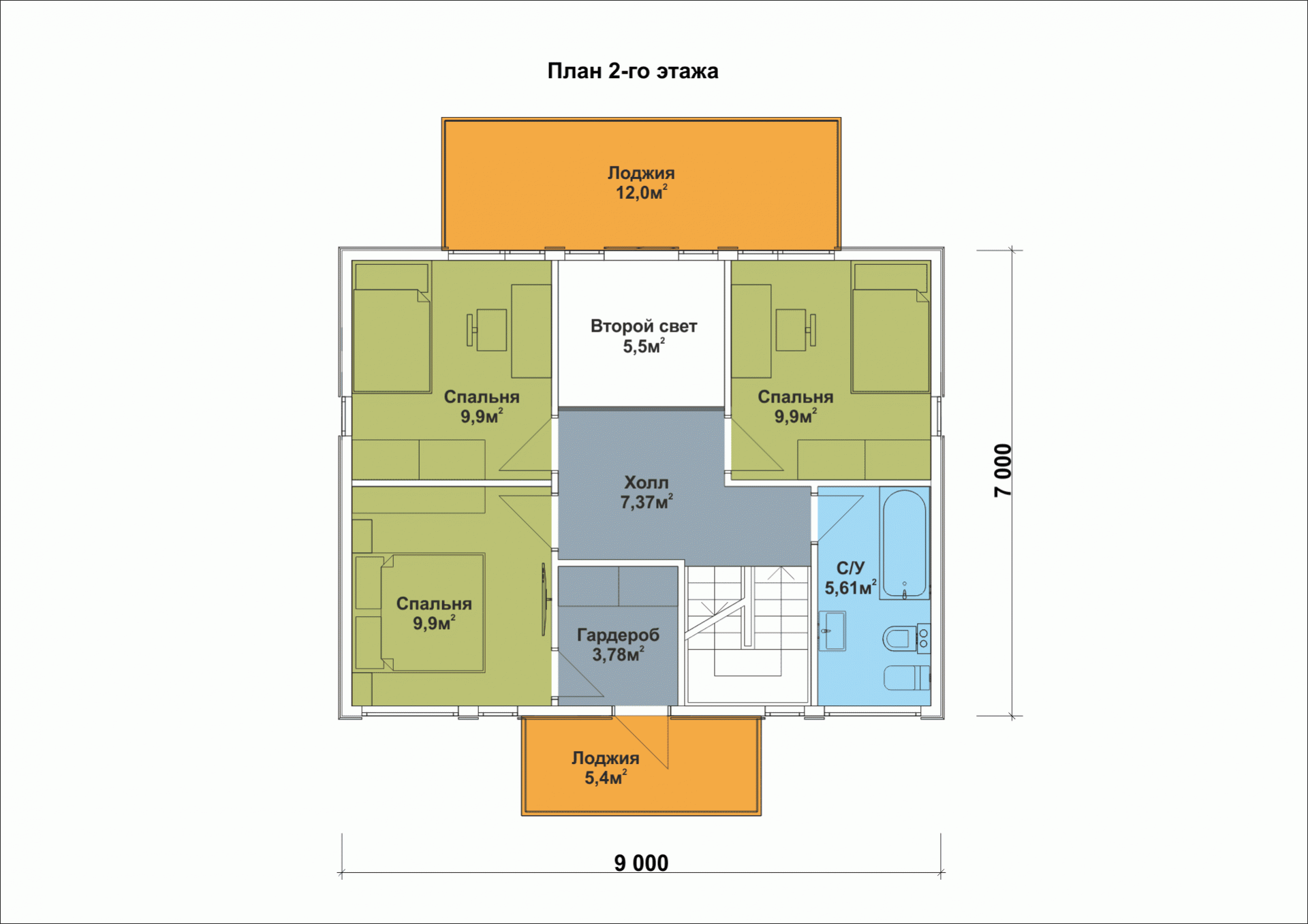 Размер дома: 9х7 м