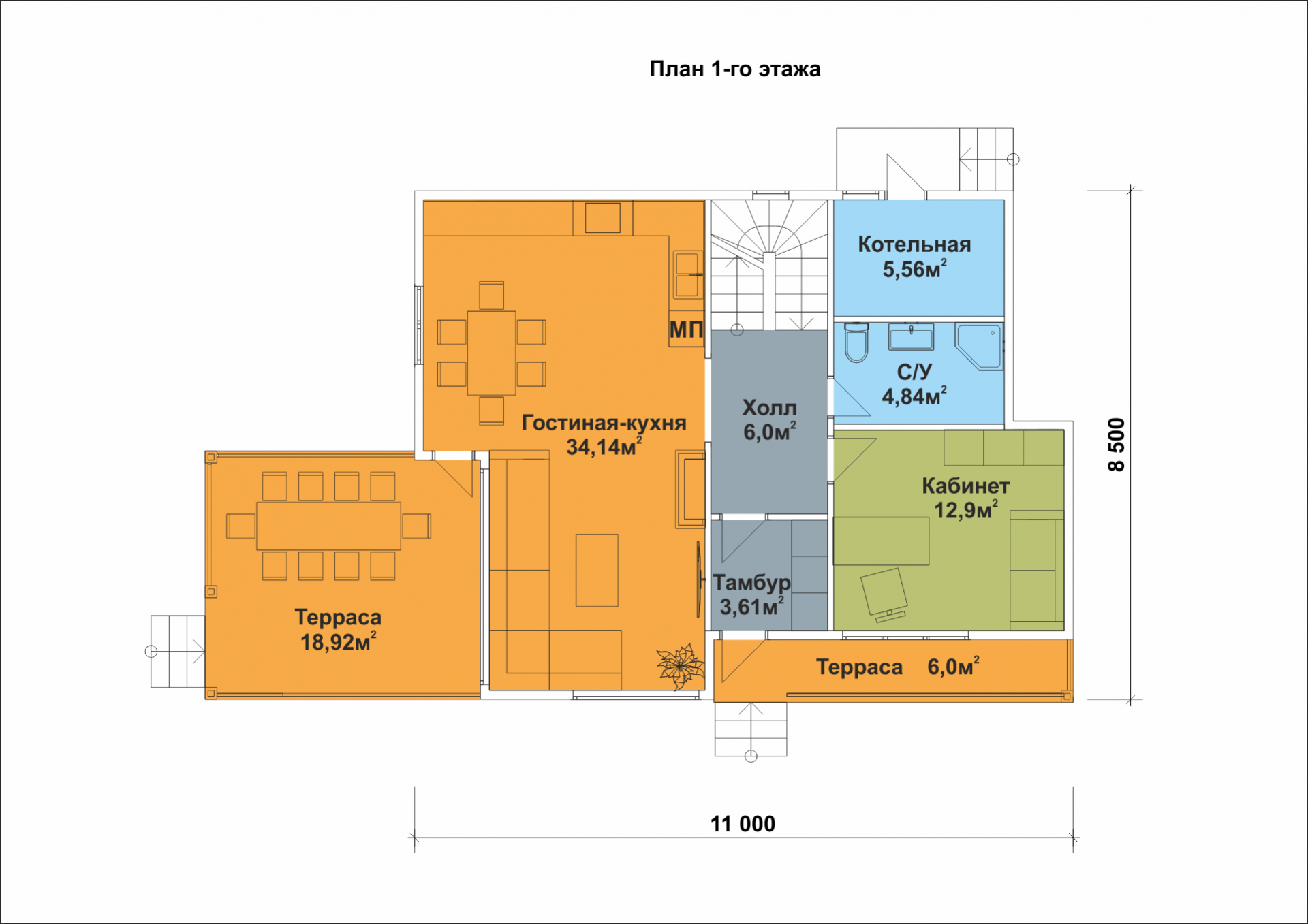 Размер дома: 11х8,5 м