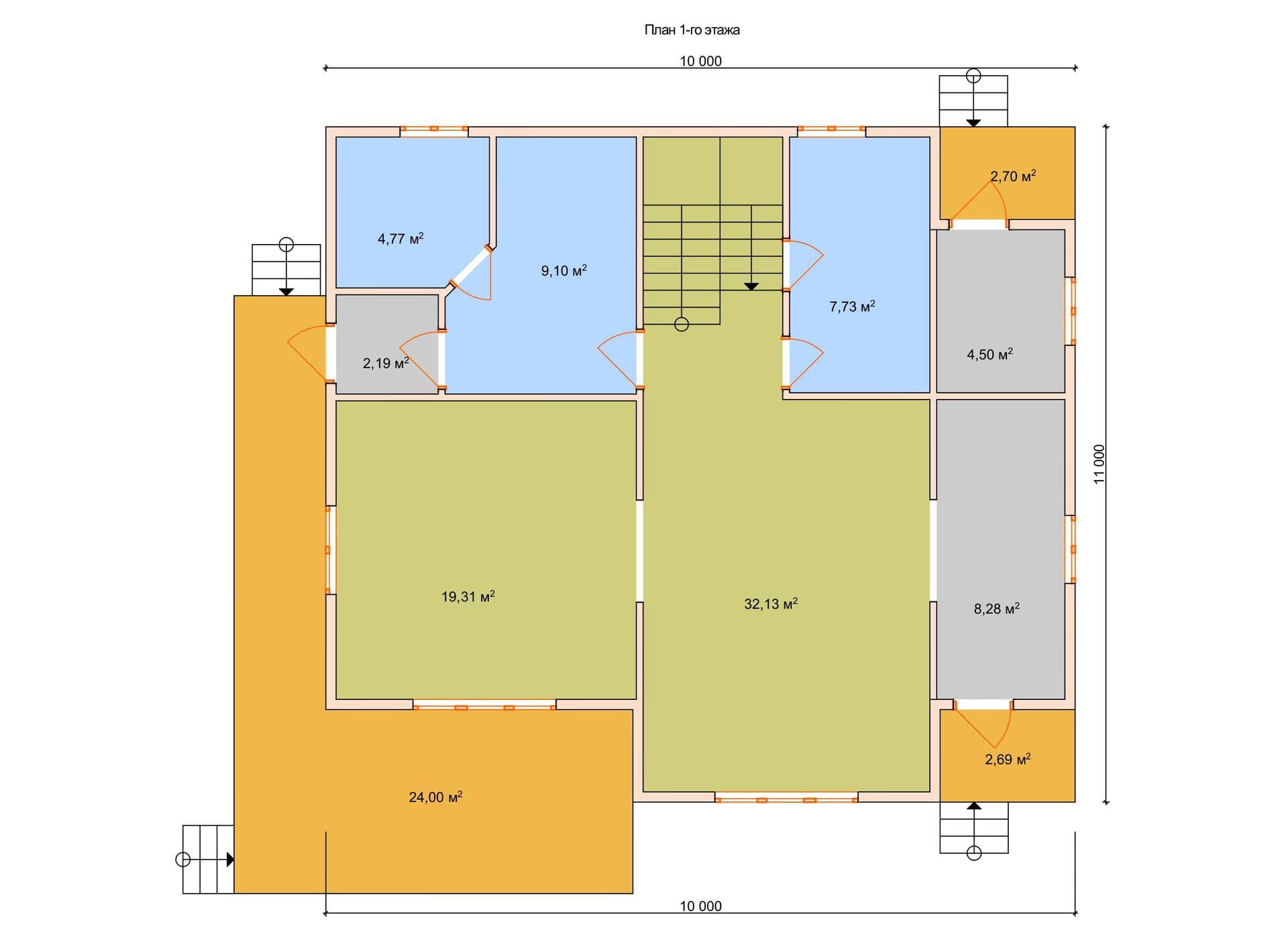 Размер дома: 11х10 м
